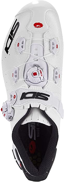 El sistema de cierre del empeine suave es una correa ancha anatómicamente curvada combinada con una suave almohadilla de Eva termoformada que distribuye la presión uniformemente sobre el área del empeine, es ajustable en ambos lados, para centrar perfectamente la almohadilla sobre un empeine alto o bajo. Sidi’s Tecno-3 System marca el ajuste a lo largo de la parte superior de los pies, los cierres reemplazables y confiables de SIDI se mejoran con un material Sidi wire patentado completamente nuevo que no se atasca para realizar ajustes sobre la marcha y sin esfuerzo. Adjustable heel retention device refuerza la parte superior del talón y mejora el ajuste al cerrar la parte posterior del zapato de forma segura alrededor del talón del ciclista. El dispositivo de retención del talón aprieta la parte superior para que el talón no se deslice durante las subidas empinadas o los sprints.